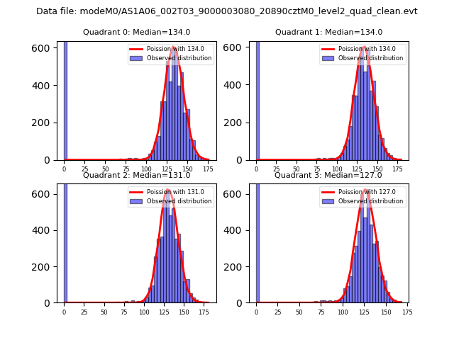Red curve is a Poisson curve with rate = median count rate of data. |