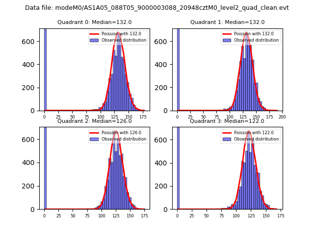 Red curve is a Poisson curve with rate = median count rate of data. |