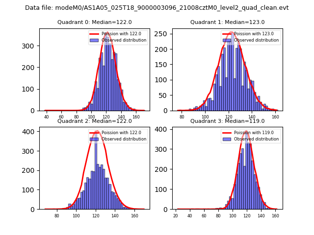 Red curve is a Poisson curve with rate = median count rate of data. |