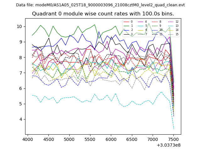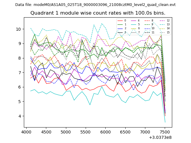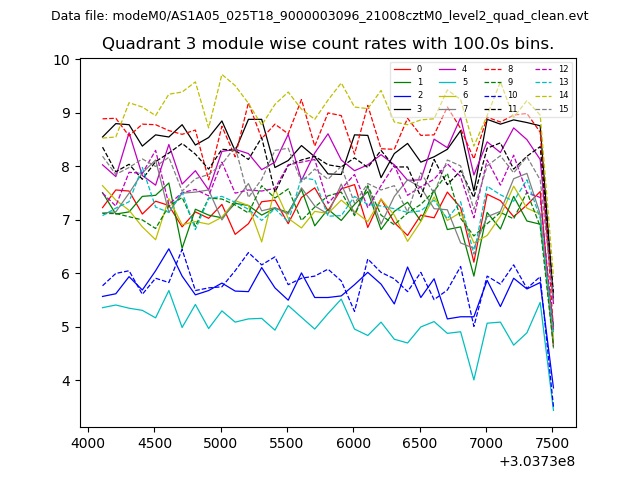 Module-wise count rates for Quadrant A