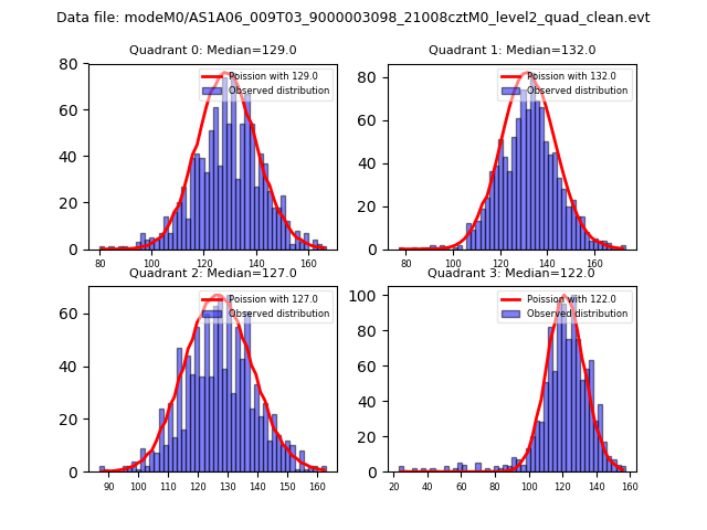 Red curve is a Poisson curve with rate = median count rate of data. |