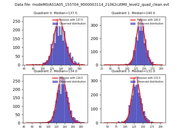 Red curve is a Poisson curve with rate = median count rate of data. |