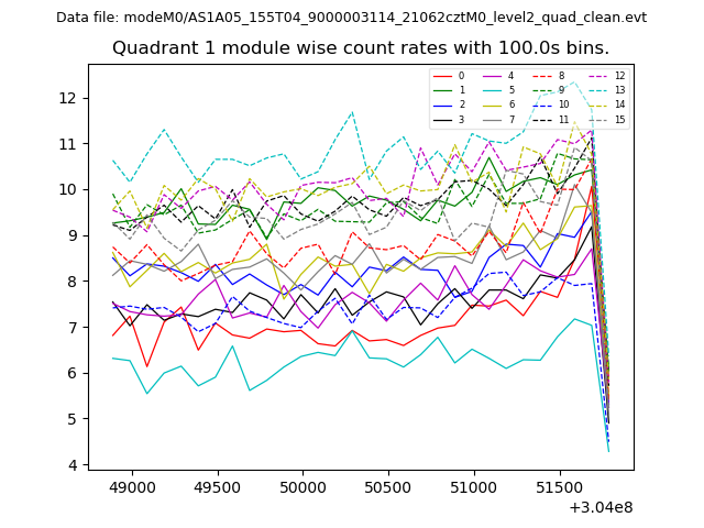 Module-wise count rates for Quadrant A
