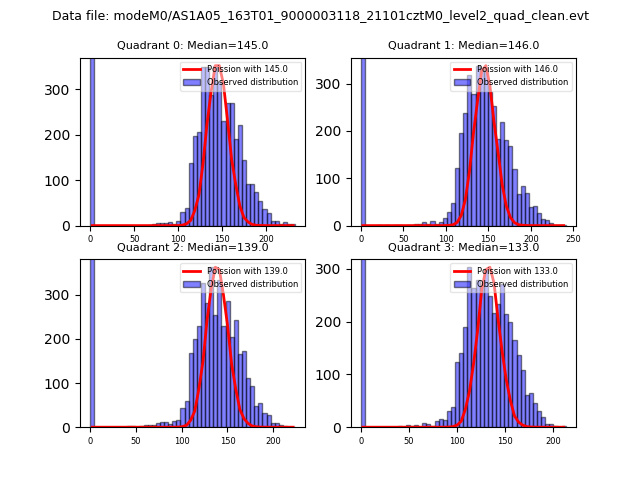 Red curve is a Poisson curve with rate = median count rate of data. |