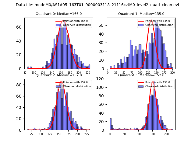 Red curve is a Poisson curve with rate = median count rate of data. |