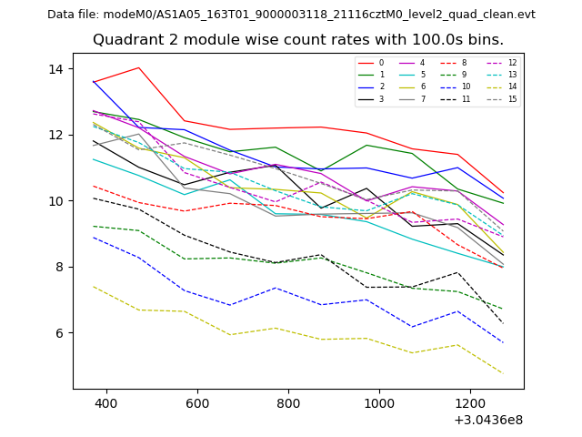 Module-wise count rates for Quadrant A