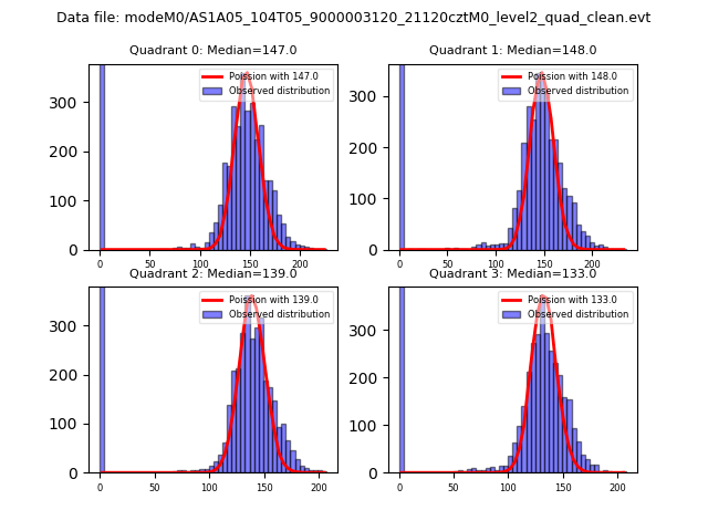 Red curve is a Poisson curve with rate = median count rate of data. |