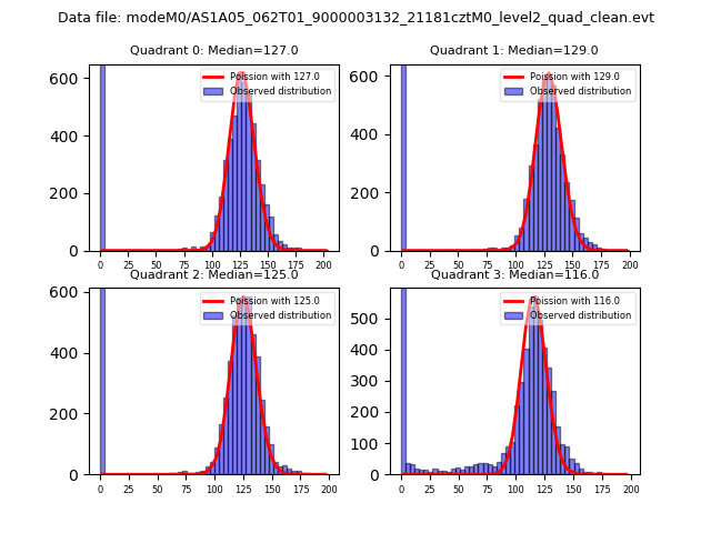 Red curve is a Poisson curve with rate = median count rate of data. |