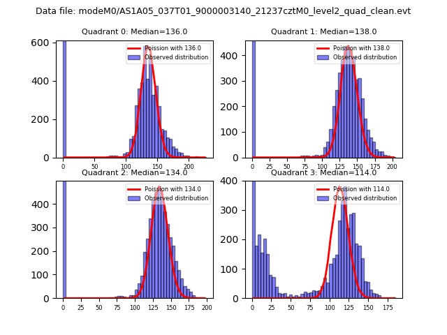Red curve is a Poisson curve with rate = median count rate of data. |