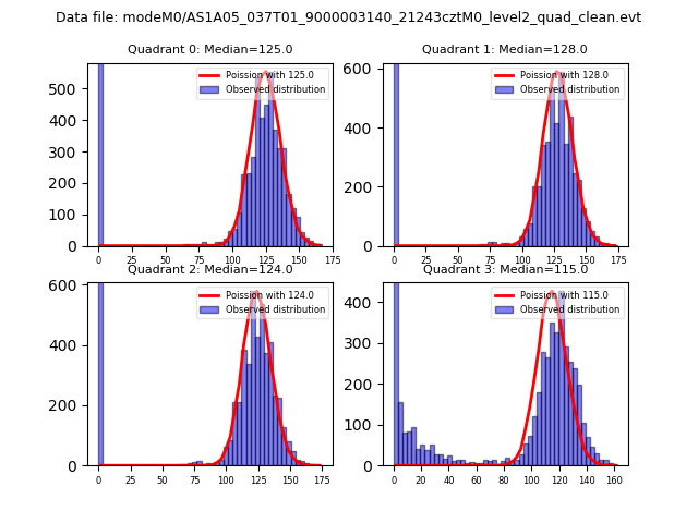 Red curve is a Poisson curve with rate = median count rate of data. |