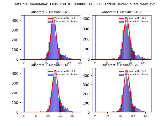 Red curve is a Poisson curve with rate = median count rate of data. |