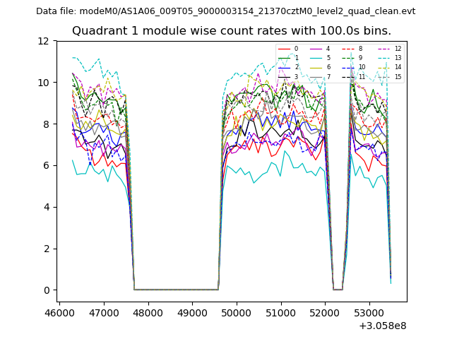 Module-wise count rates for Quadrant A