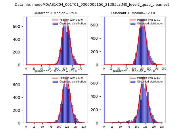 Red curve is a Poisson curve with rate = median count rate of data. |