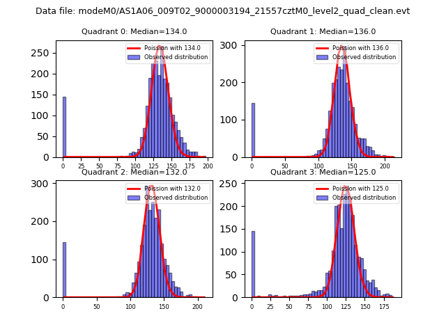 Red curve is a Poisson curve with rate = median count rate of data. |