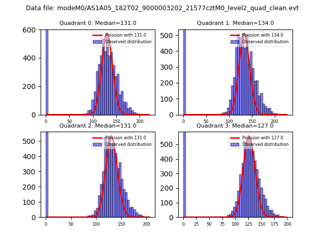 Red curve is a Poisson curve with rate = median count rate of data. |