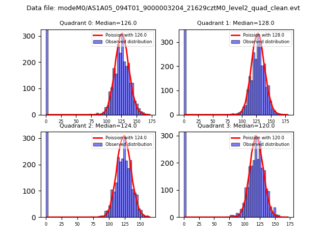 Red curve is a Poisson curve with rate = median count rate of data. |