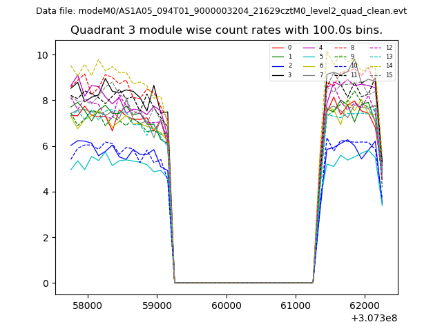 Module-wise count rates for Quadrant A