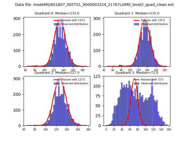 Red curve is a Poisson curve with rate = median count rate of data. |