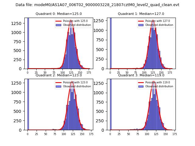 Red curve is a Poisson curve with rate = median count rate of data. |