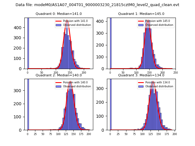 Red curve is a Poisson curve with rate = median count rate of data. |