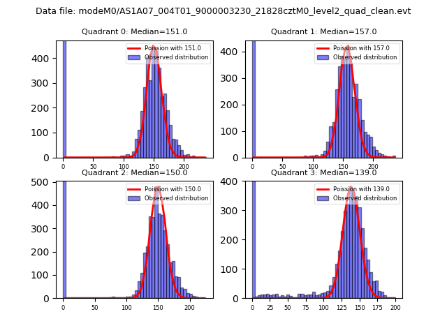 Red curve is a Poisson curve with rate = median count rate of data. |