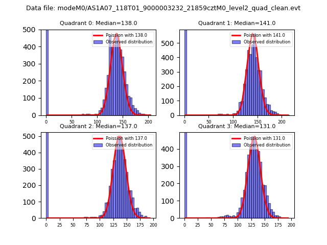 Red curve is a Poisson curve with rate = median count rate of data. |