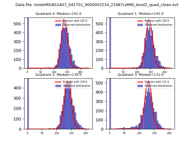 Red curve is a Poisson curve with rate = median count rate of data. |