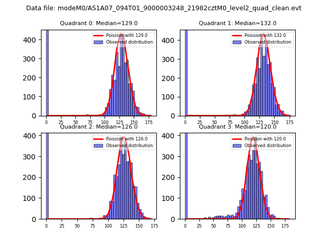 Red curve is a Poisson curve with rate = median count rate of data. |