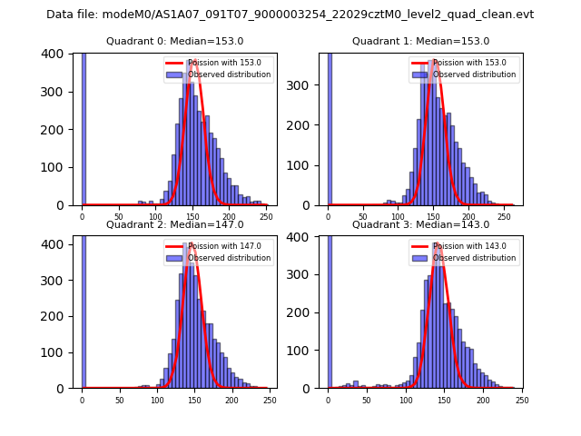 Red curve is a Poisson curve with rate = median count rate of data. |