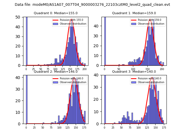 Red curve is a Poisson curve with rate = median count rate of data. |