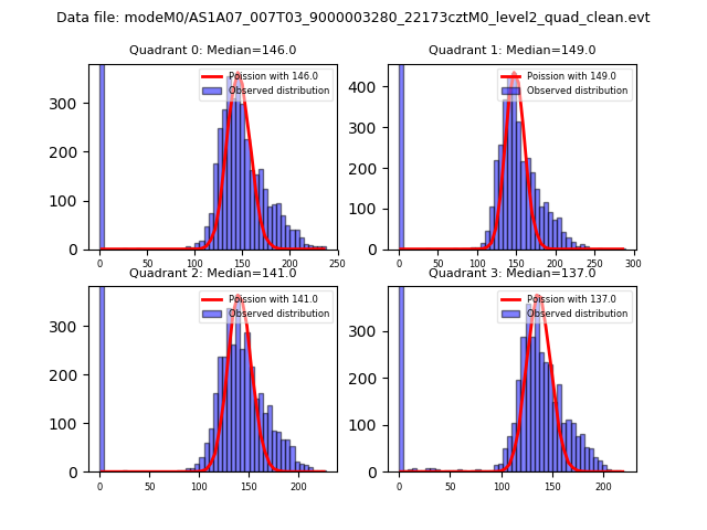 Red curve is a Poisson curve with rate = median count rate of data. |