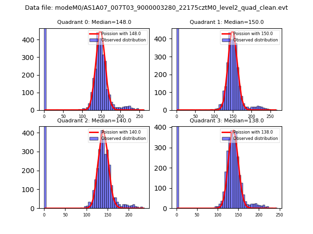 Red curve is a Poisson curve with rate = median count rate of data. |
