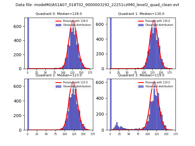 Red curve is a Poisson curve with rate = median count rate of data. |