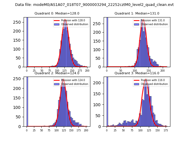 Red curve is a Poisson curve with rate = median count rate of data. |