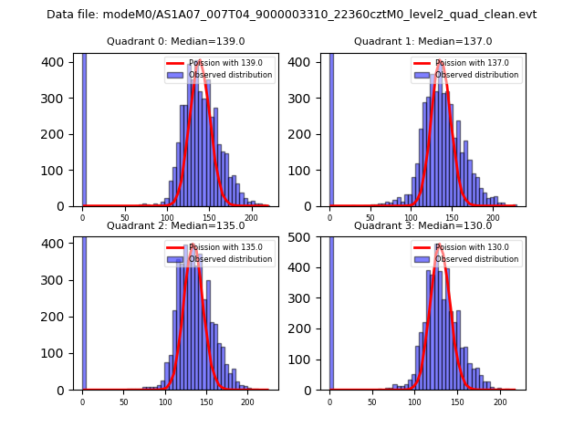 Red curve is a Poisson curve with rate = median count rate of data. |