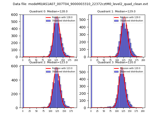 Red curve is a Poisson curve with rate = median count rate of data. |