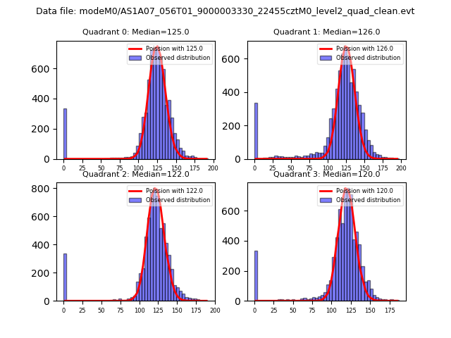Red curve is a Poisson curve with rate = median count rate of data. |