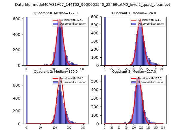 Red curve is a Poisson curve with rate = median count rate of data. |