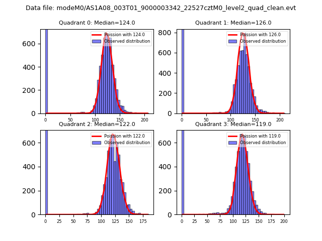 Red curve is a Poisson curve with rate = median count rate of data. |