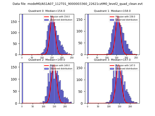 Red curve is a Poisson curve with rate = median count rate of data. |
