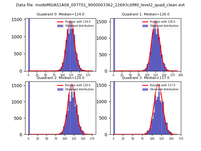 Red curve is a Poisson curve with rate = median count rate of data. |