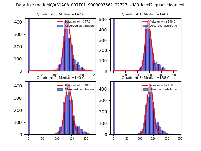 Red curve is a Poisson curve with rate = median count rate of data. |