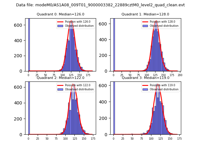 Red curve is a Poisson curve with rate = median count rate of data. |