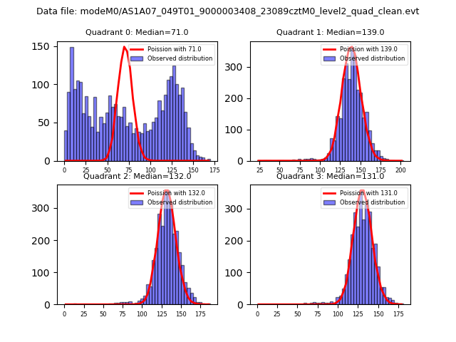 Red curve is a Poisson curve with rate = median count rate of data. |