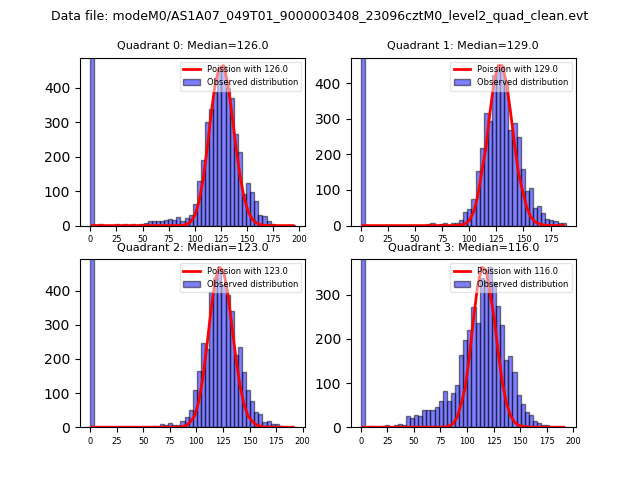 Red curve is a Poisson curve with rate = median count rate of data. |
