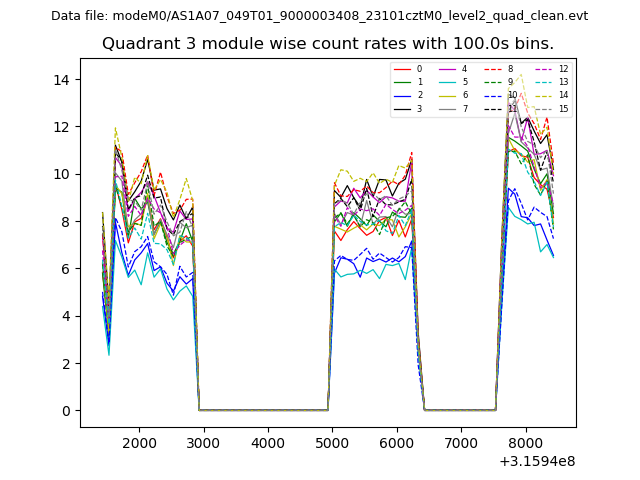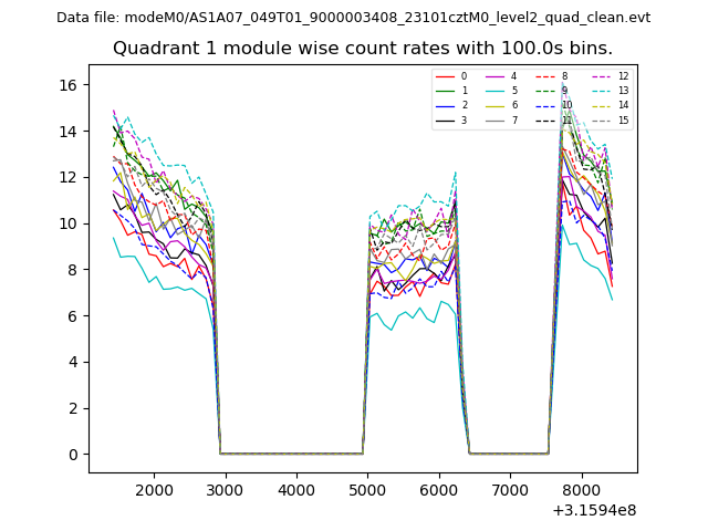 Module-wise count rates for Quadrant A