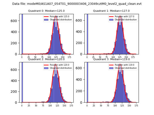 Red curve is a Poisson curve with rate = median count rate of data. |