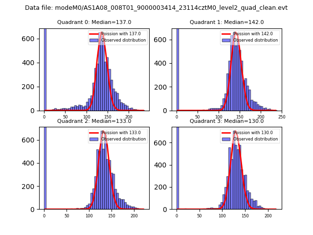Red curve is a Poisson curve with rate = median count rate of data. |