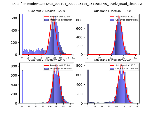 Red curve is a Poisson curve with rate = median count rate of data. |