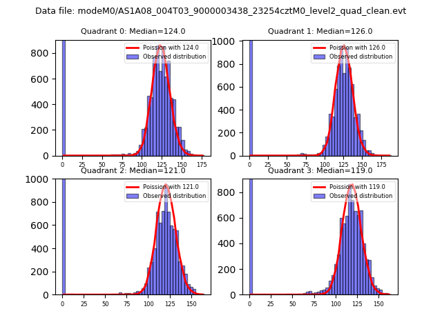 Red curve is a Poisson curve with rate = median count rate of data. |